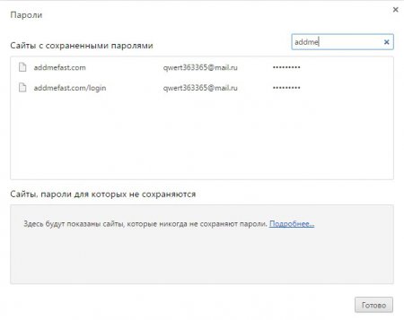 4. Відкриється діалогове вікно “Паролі”, яке має список сайтів з збереженими паролями, а також безпосередньо самі паролі, які були збережені. Якщо вам ніжно видалити паролі з конкретного сайту, то скористайтеся рядком пошуку, щоб ввести його url-адресу.