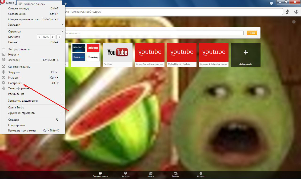 - Запускаємо браузер і натискаємо кнопочку «Налаштування Opera».