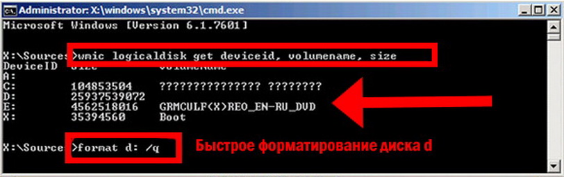 - Варто відзначити, що літери розділів, які ви певний час спостерігали в середовищі Windows і вважаєте закріпленими унификаторами розділів накопичувача, в режимі командного рядка можуть відрізнятися. Тому найбільш доцільніше «дізнаватися» диски за їх накопичувальної ємності, тобто за розміром.