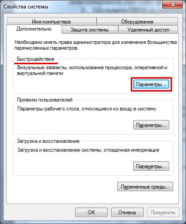 • Знайдіть поле «Швидкодія» та натисніть кнопку «Параметри».