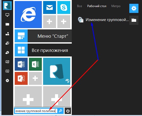 Отже, відкрийте меню «Пуск». Потім в пошуковий рядок введіть наступну фразу «Зміна групової політики». Ваша система знайде відповідний розділ в «Панелі управління». Клацніть по ньому.