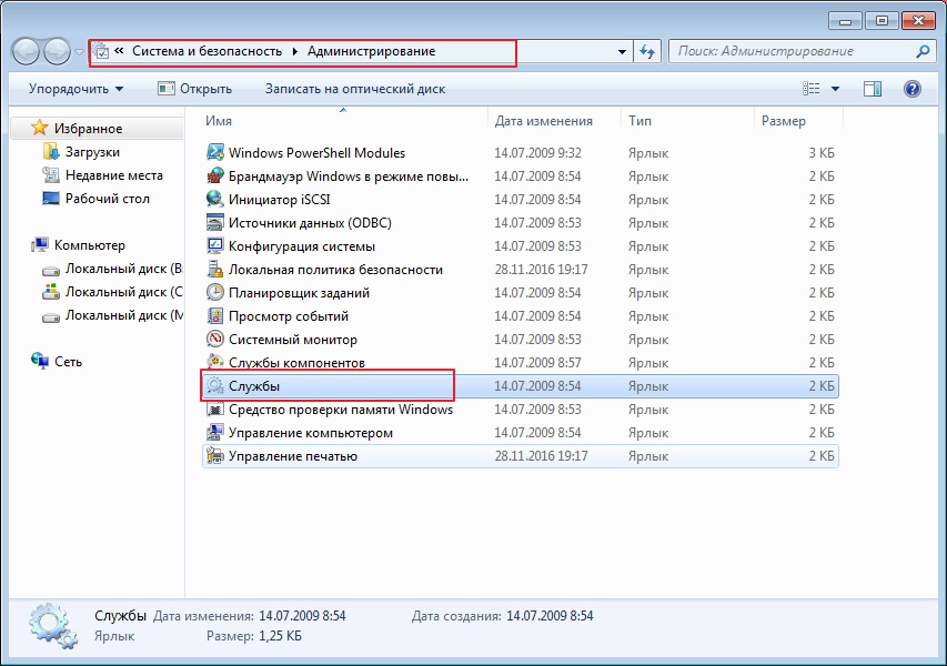 При бажанні можна повністю відключити опцію. Знову відкриємо «Панель управління – Система і безпека», потім «Адміністрування – Служби».