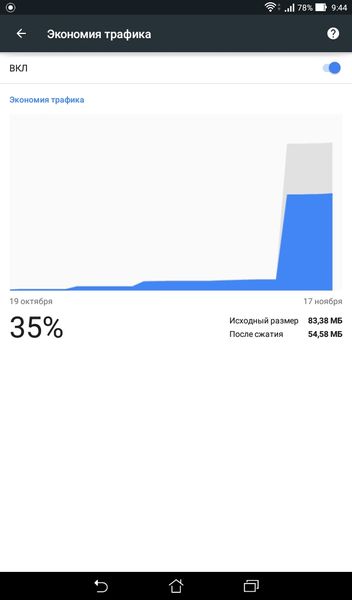 - Переконайтеся, що «економія трафіку» включена. Там же ви можете подивитися статистику роботи даної опції.