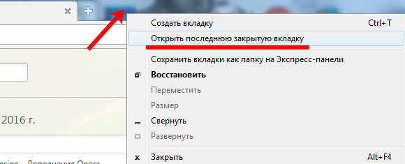 Відкриваємо закриті вкладки, використовуючи меню вкладок