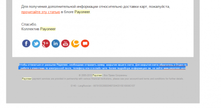 Можна навіть відписувати від розсилки Банків, але там трохи складніше, потрібно відправляти запит і через час вони відпишуть ваш E-mail адресу від розсилок. Відписатися від платіжної системи Payoneer.
