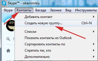 У верхньому меню натискаємо на кнопочку «Контакти» і з випав списку вибираємо пункт «Створити нову групу…»