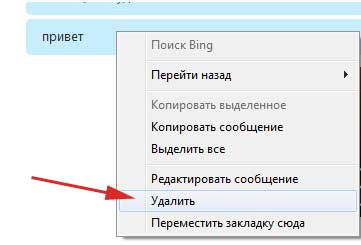 Ту взагалі все простіше простого. На повідомленні, яке ви хочете видалити натисніть правою кнопкою миші і з випав списку виберіть пункт «Видалити».