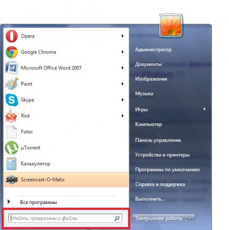 Відкрийте Меню «Пуск» – «Усі програми» ви відшукайте пошуковий рядок. Курсор в ній встановлений за замовчуванням, тому ви можете відразу набирати на клавіатурі назву шуканого файлу або програми.