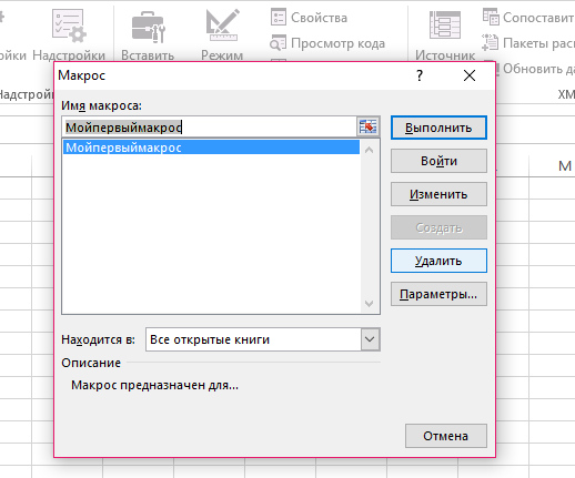 Вибираємо потрібний макрос і натискаємо на кнопку, як «Виконати».