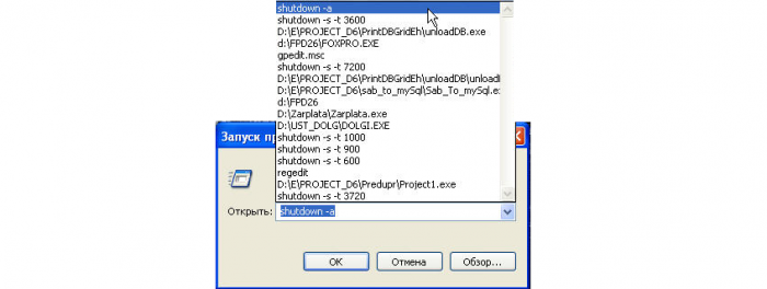 В цьому ж вікні «запуск програм» можуть бути задані команди, які найчастіше використовувалися користувачем.