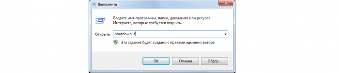 Натисніть сполучення клавіш Win+R і відкрийте доступ до утиліті «Виконати». Щоб примусово вимкнути ПК, в неї достатньо ввести наступне: