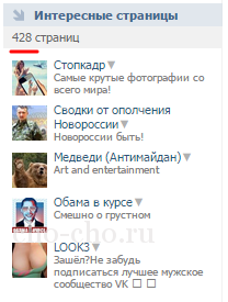 • Дивимося кількість цікавих сторінок. Тут знову таки може бути більше 2х, а то й 3х сотень сторінок. Відкриваємо. Гортаємо в низ списку. О, після публічних сторінок (спільнот) тут величезна кількість анкет інших користувачів. Знайте, це ті люди, з якими заявка в друзі теж була відправлена, але була відкинута. Таким чином, фейк аккаунт автоматично підписується на іншу сторінку користувача. А вже якщо серед них 5-10, а то й більше «собачок», то доказ вже 99 процентне.