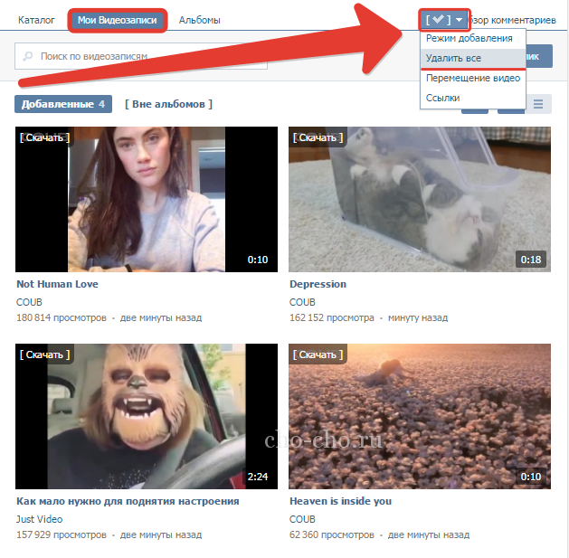 Стандартного способу від творців самої соцмережі видалити всі ролики разом, на жаль, не існує. Але не біда: у cho-cho.ruяк завжди знайдеться рішення.