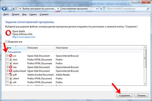 Якщо ви хочете, щоб в Опері відкривалися певні типи файлів та протоколи, клікніть на «Вибрати настройки для цієї програми». Потім встановіть галочки в потрібних полях і натисніть «Зберегти».