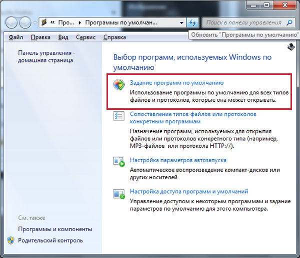 Далі клікаєм по посиланню «Завдання програм за замовчуванням»: