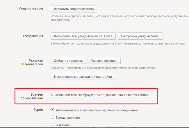 - 1 Як зробити Яндекс браузером за замовчуванням за допомогою внутрішніх налаштувань програми
