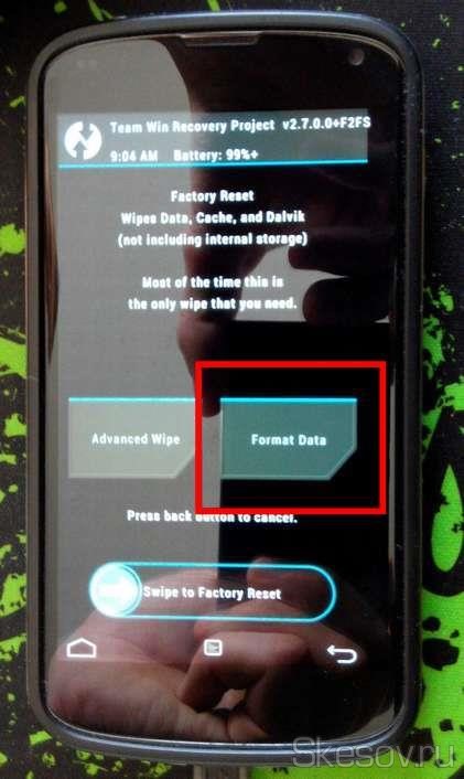 Вибираємо Wipe і тиснемо кнопку Data Format (це кнопка праворуч від Advanced Wipe). Для початку форматування потрібно написати yes.