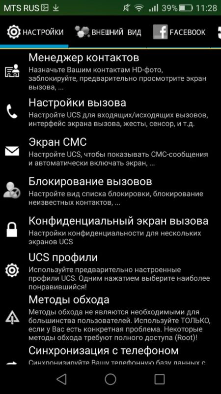 Програма Ultimate CallerID Screen HD може виконувати ряд різних функцій