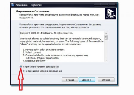 Наступним пунктів вам потрібно ознайомитися з ліцензійною угодою. Після ознайомлення встановіть прапорецьЯ приймаю умови угоди» та натисніть кнопку «Далі».
