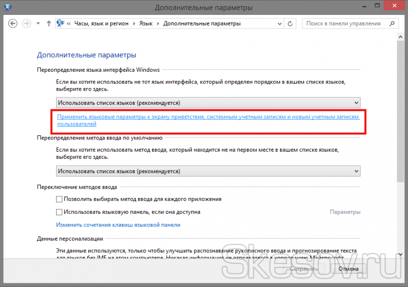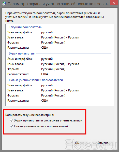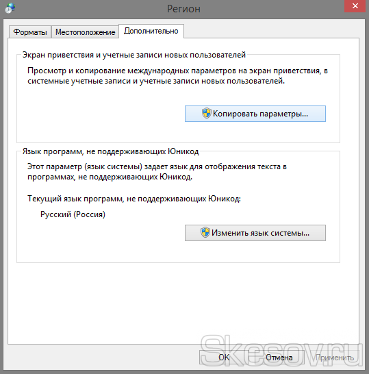 Тиснемо по синьому текстом «Застосувати мовні параметри до екрану вітання, системних облікових записів і нових облікових записів користувачів».