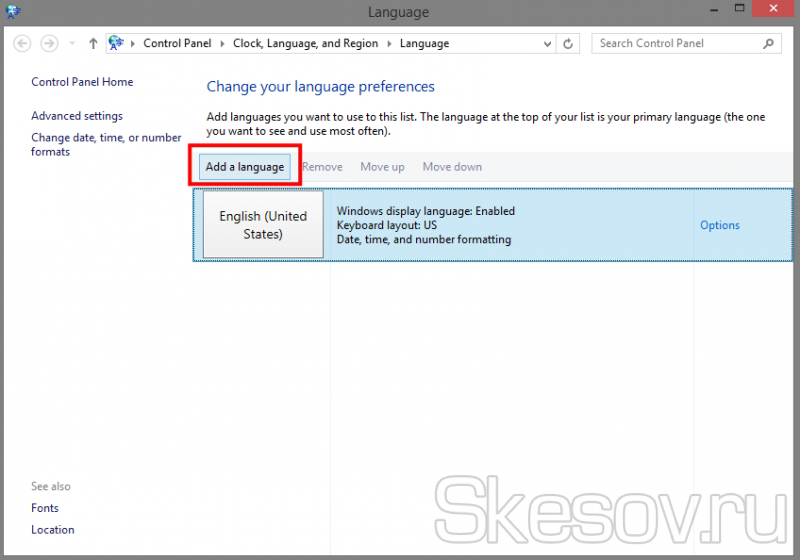 Нам потрібно потрапити в інструмент «Зміна параметрів» (англійською він називається просто «Language»), для цього можна увійти в «Панель управління» — розділ «Годинник, мова, регіон» — «Додавання мови». А можна зробити простіше: натисніть Win+R і скопіювати туди наступну команду: control.exe /name Microsoft.Language.
