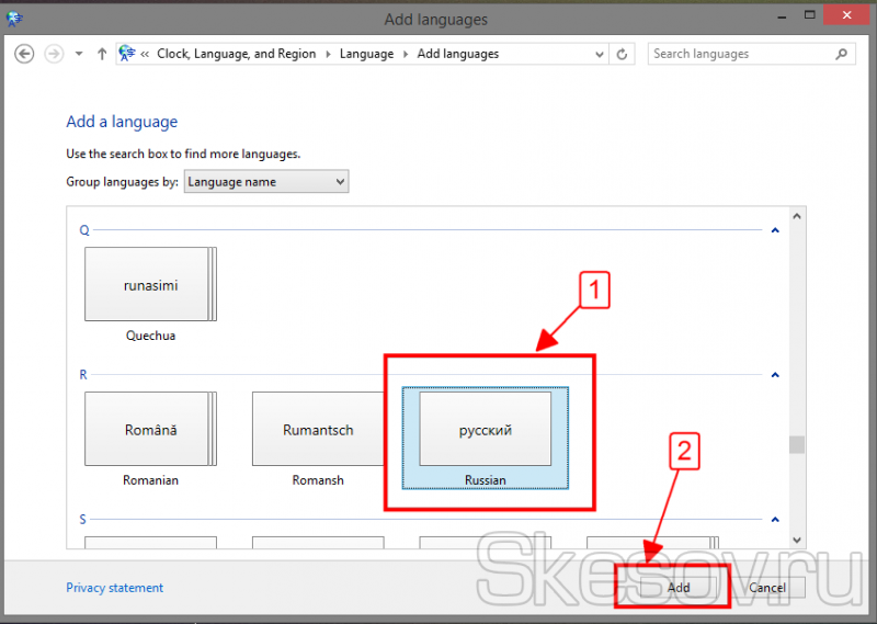 Вибираємо «Російський» і тиснемо кнопку «Add».