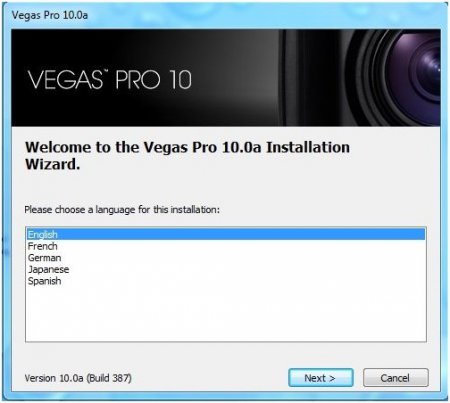1. І так, запускаємо, двома кліками мишкою vegaspro11.0.682_32(64)bit_full.exe. З’явилося віконце, в якому нам пропонують вибрати мову інтерфейсу, в даному випадку це англійська. Вибрали і натискаємо кнопку «Next».