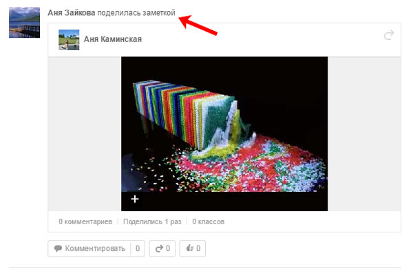 Після цього на додану вами замітку з гифкой ваші друзі побачать у стрічці. Якщо хочете, щоб гифка показувалася статус, поставте галочку в полі «статус». Про те, де збереглася додана анімація на вашій сторінці, ми поговоримо нижче.