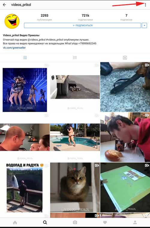 На сторінці даного користувача натискаємо на меню у вигляді трьох вертикальних точок у правому верхньому куті.