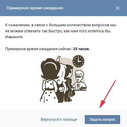 Нас попереджають про те, що питань дуже багато і ставлять приблизний час, через яке ви можете отримати відповідь. У цьому вікні необхідно натиснути на кнопку «Задати питання»