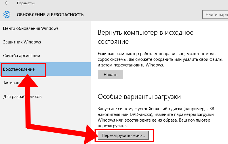 - У блоці «Особливі варіанти…» активуйте кнопку «Перезавантажити зараз».