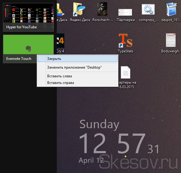 Сьогодні ж ми розглянемо, до речі, один з них. На моєму планшеті 2 Гб оперативки і хоча Microsoft доопрацювала систему оптимізації використання оперативної пам’яті в Windows 8.1, я волію сам контролювати відкриті програми (стара звичка чи розумієте). Завдяки доопрацювання цієї програми в тлі повинні частково вивантажуватися з оперативної пам’яті, а через деякий взагалі закриватися. Так от, виявилося, що на сенсорних екранах, не так просто здогадатися, як же закрити ці самі сучасні програми (вільний переклад Modern UI App). Всього я знайшов чотири способи закриття програми, абсолютно всі працюють при використанні миші, але тільки два виходить використовувати за допомогою сенсорного екрану і я не зовсім розумію, чому Microsoft зробили саме так. Ну, почнемо по порядку: