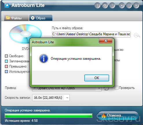 Як записати образ на оптичний диск (CD, DVD і Blu-ray) з допомогою програми Astroburn Lite