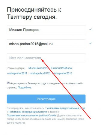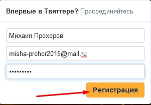 У блоці, над яким написано “Вперше в Твіттері? Приєднуйтесь” заповніть порожні поля: