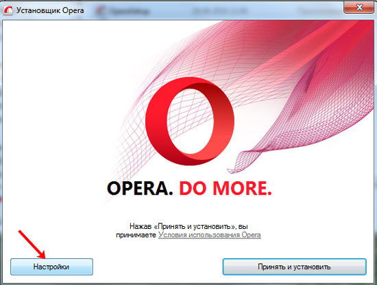 Після цього відкриється вікно Установник Opera. Натисніть на кнопочку «Налаштування».