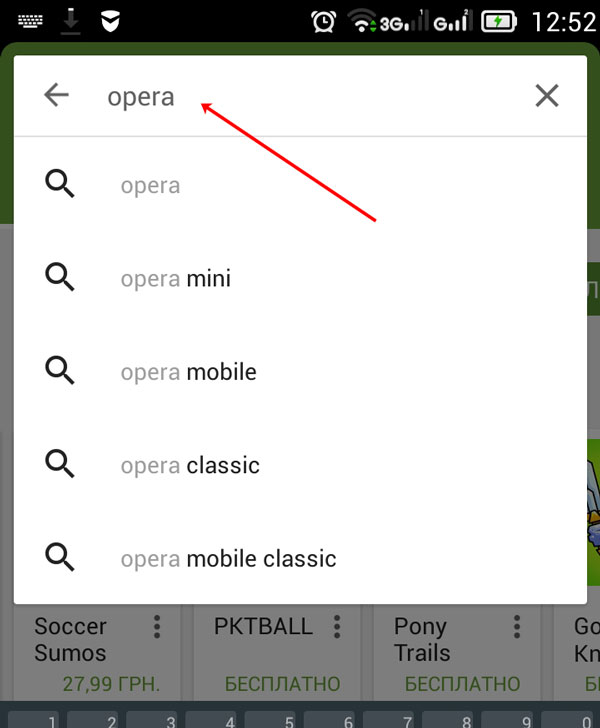 Для того щоб скачати Оперу на пристрій з Android, зайдіть в Play Market. У рядку пошуку вводимо Opera.
