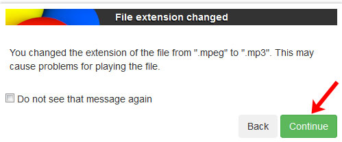 З’явиться вікно попередження, що ви змінили розширення файлу. Натисніть «Continue».