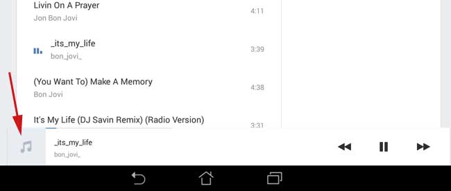 Натискаємо на знайдену композицію, вона починає програватися і в самому низу у нас з’являється аудіоплеєр, натискаємо на миниатюрку пісні, як показано на скріншоті: