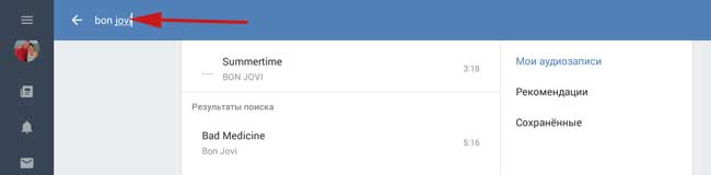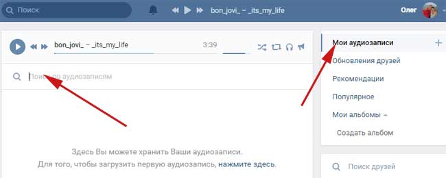 На вкладці «Мої аудіозаписи» знаходимо рядок пошуку: