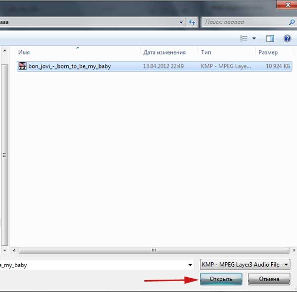 Знаходимо на вінчестері композицію, яку хочемо додати і натискаємо на кнопку «Відкрити»: