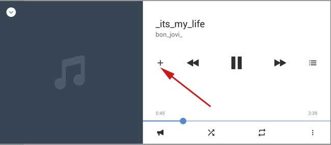 У подгрузившемся вже великому плеєрі натискаємо на плюсик в лівому кутку. Щоб вона додалася до вас в плейлист: