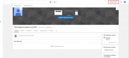 І так приступимо. Заходимо на свій канал на YouTube і натискаємо зверху, праворуч «Додати відео».