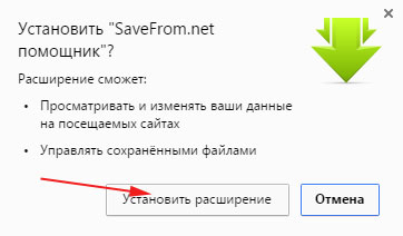Чесно кажучи, через інсталятор розширень в Мозілі у мене не вийшло знайти Savefrom.net, тому довелося заходити на їх однойменний сайт, природно, з Мозилы і прямо там вже жати на кнопку «Встановити»: