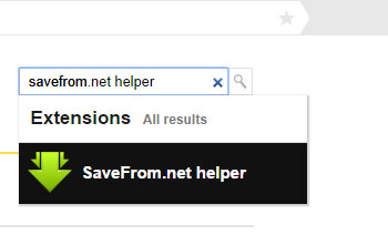 Відкривається нова вкладка, де ми пишемо в рядку пошуку Savefrom.net helper. Нам відразу ж прямо там видається результат, натискаємо на нього