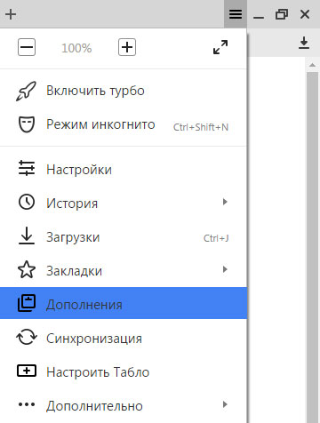 Запускаємо браузер і натискаємо на верхнє меню у вигляді трьох горизонтальних смужок. Зі списку вибираємо пункт «Додатки»: