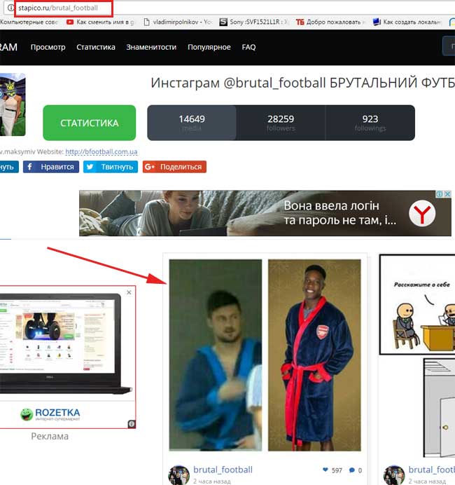 - 1 Завантажуємо фото з Инстаграма за допомогою сервісу stapico.ru.