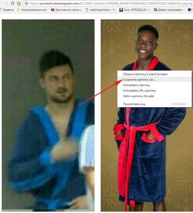 У нас відкривається нова вкладка в браузері, в якій буде показано наше фото. Натискаємо правою кнопкою миші по ньому і з випавшого меню вибираємо пункт «Зберегти малюнок як…»