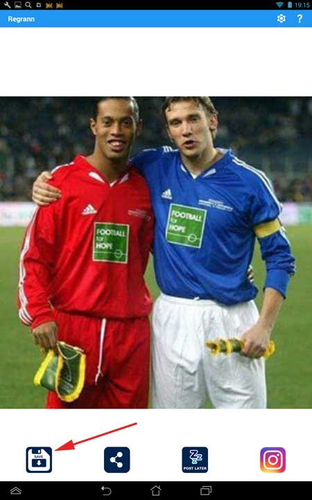 У нас відразу ж автоматом запускається додаток Regrann і в лівому нижньому куті ми повинні натиснути на кнопку «Save»