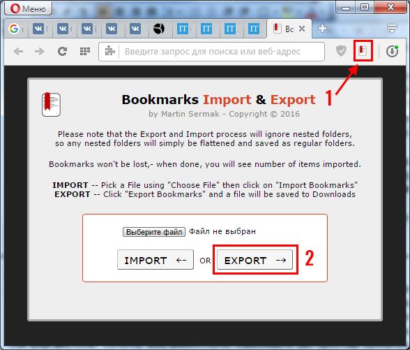У порівнянні з аналогічною процедурою в інших браузерах у розширення є невеликий плюс – експорт закладок в Опері 43 виконується буквально в один клік.