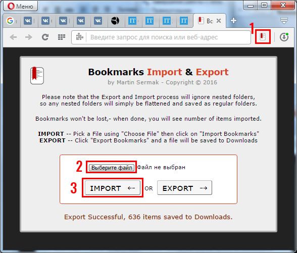 Імпорт закладок в Оперу теж виконується через це розширення. Для цього:
